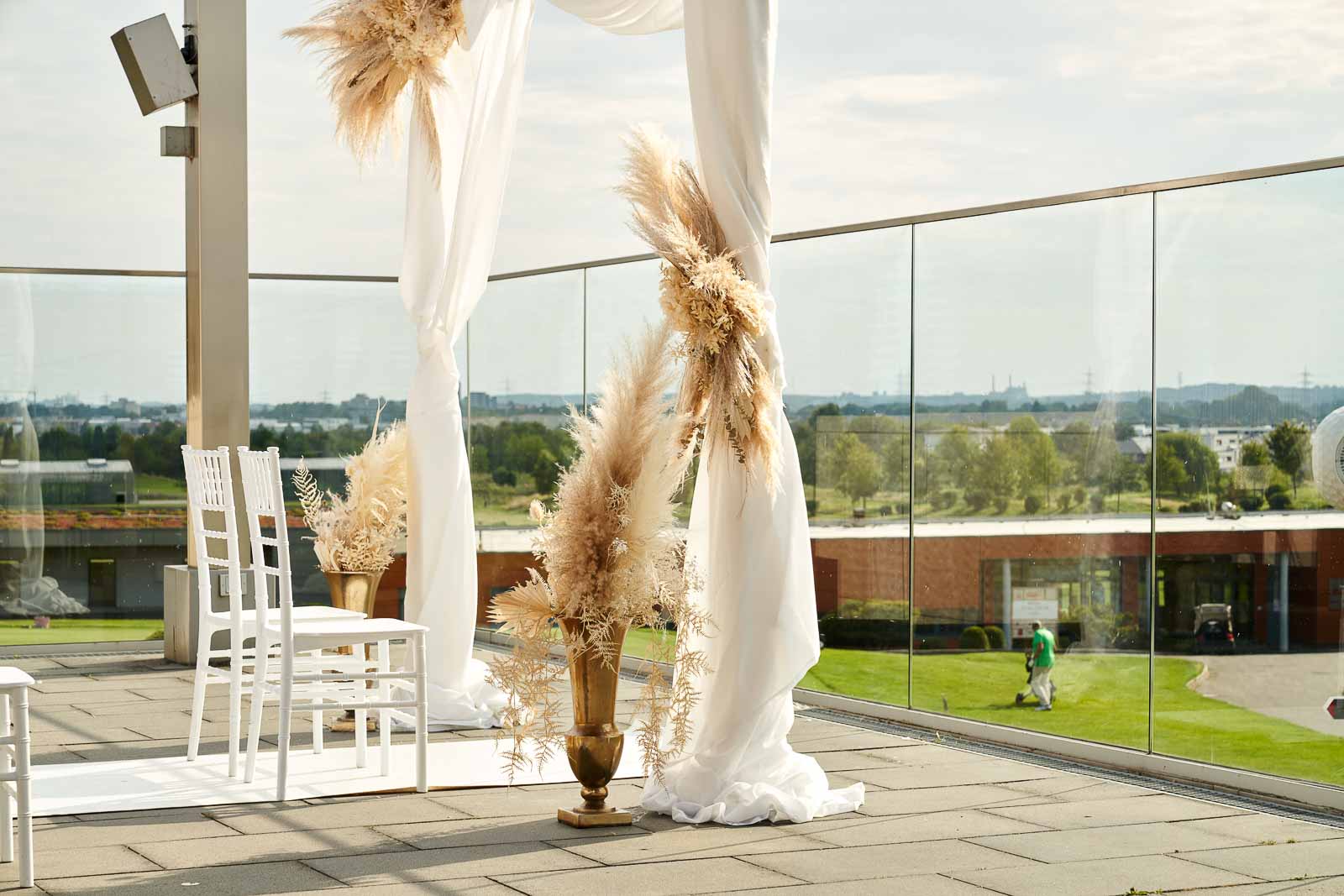 Die außergewöhnliche Location „The Green“ überzeugt durch ein modernes Ambiente, das sich nahtlos in die umgebende Natur einfügt. Die lichtdurchfluteten Räume mit den bodentiefen Fenstern bieten einen einzigartigen Blick auf die Grünanlagen sowie einen direkten Zugang zu unseren einladenden Sonnenterrassen.